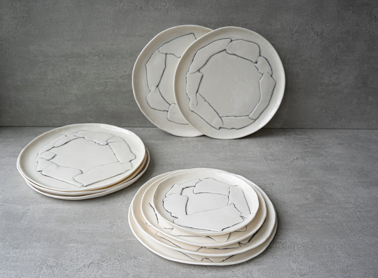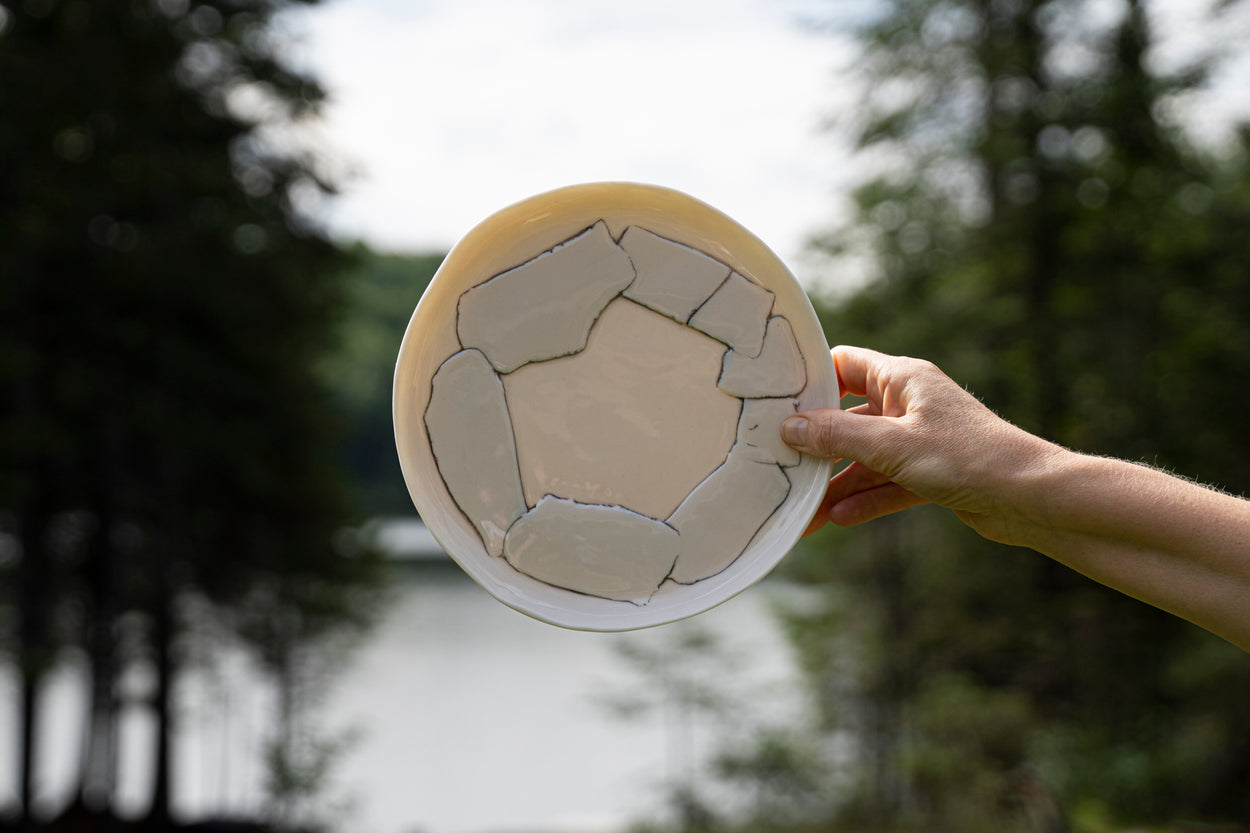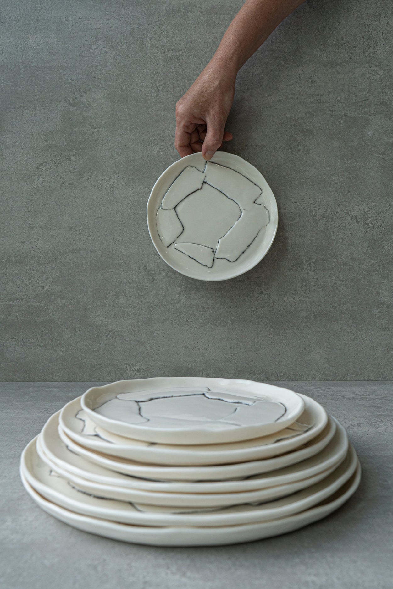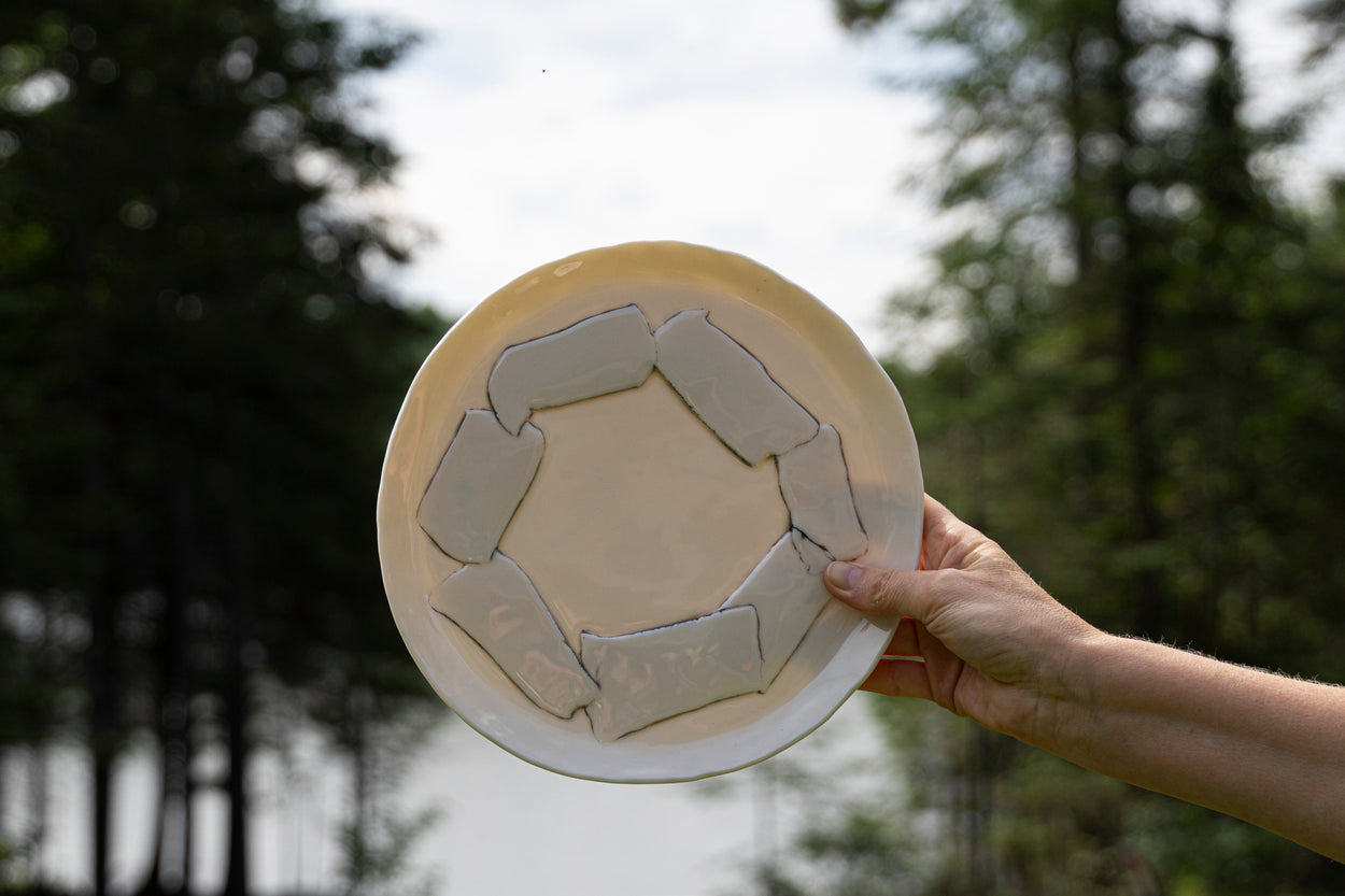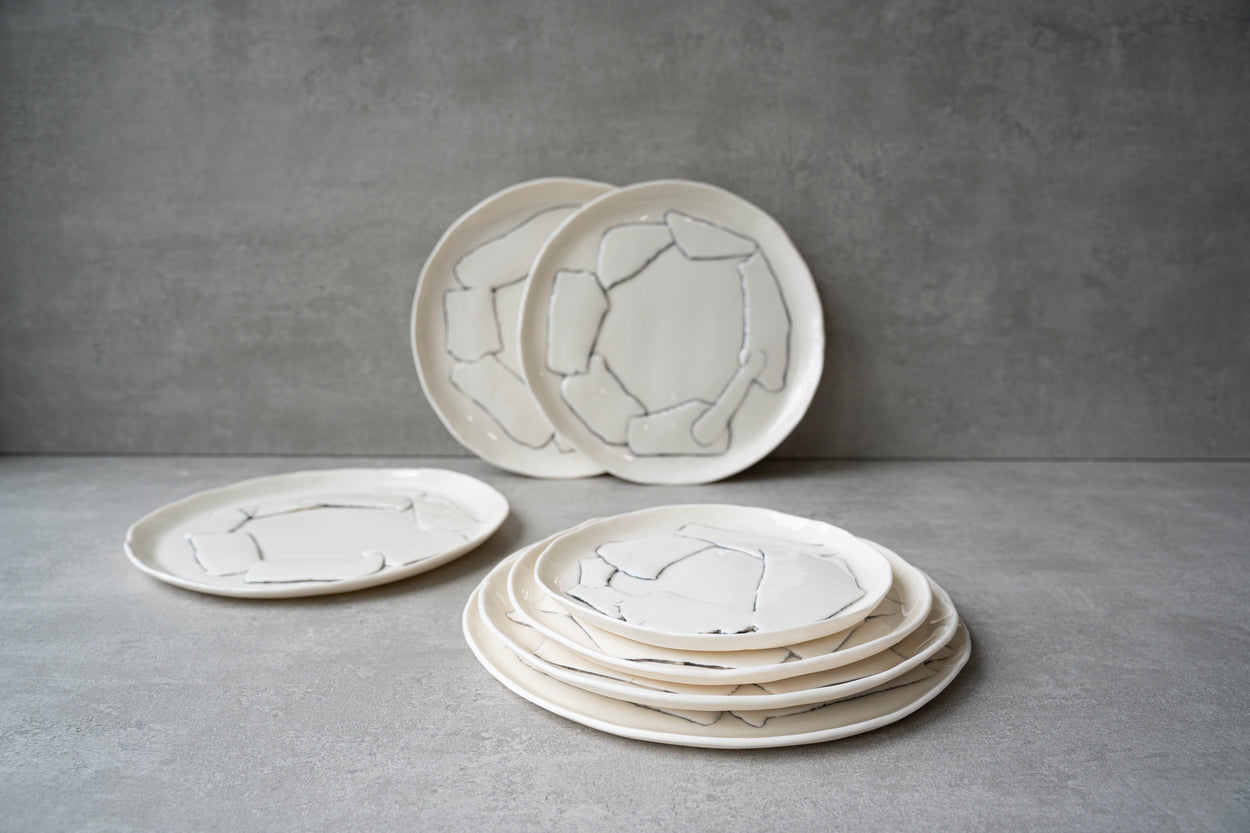 Assiette en porcelaine fine, blanche et translucide à la lumière. Emaillée à l'intérieur, polie à l'extérieur.