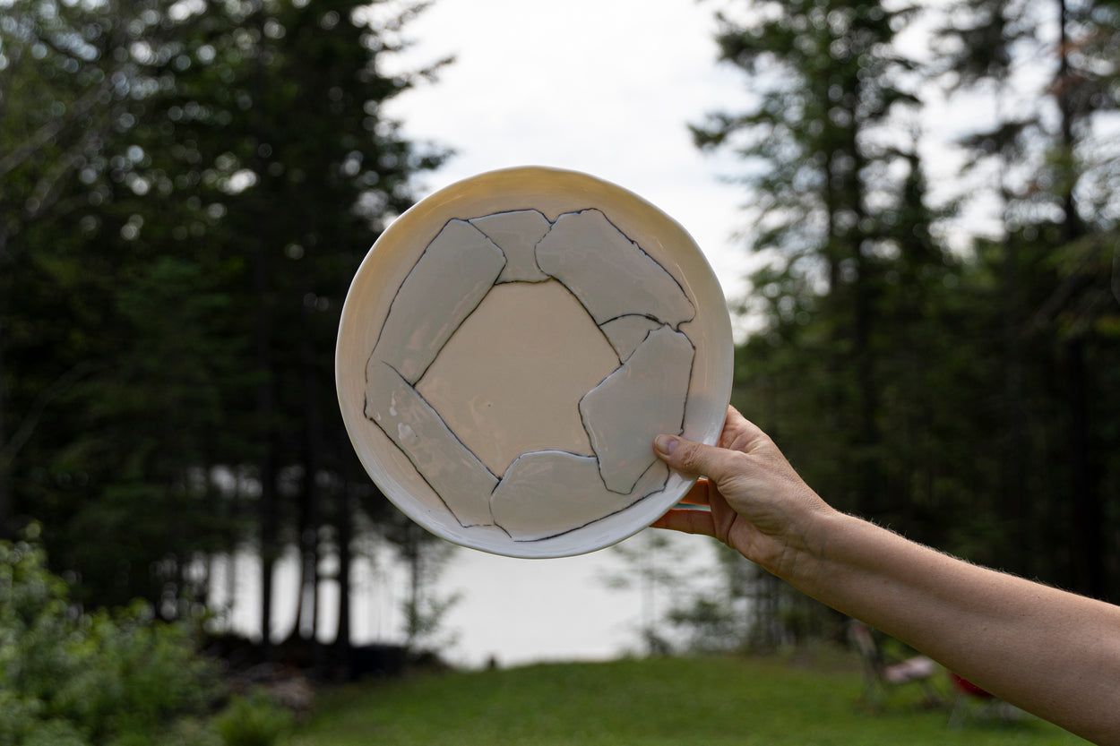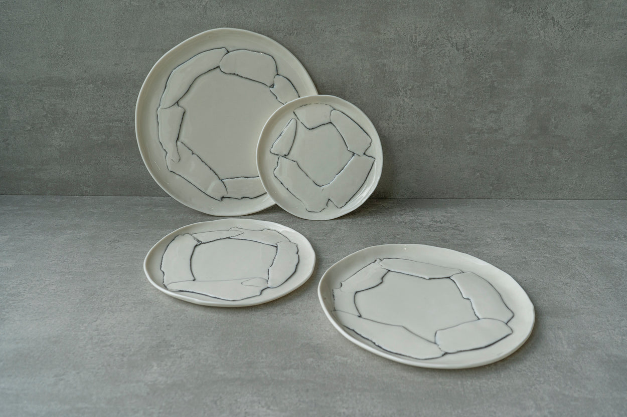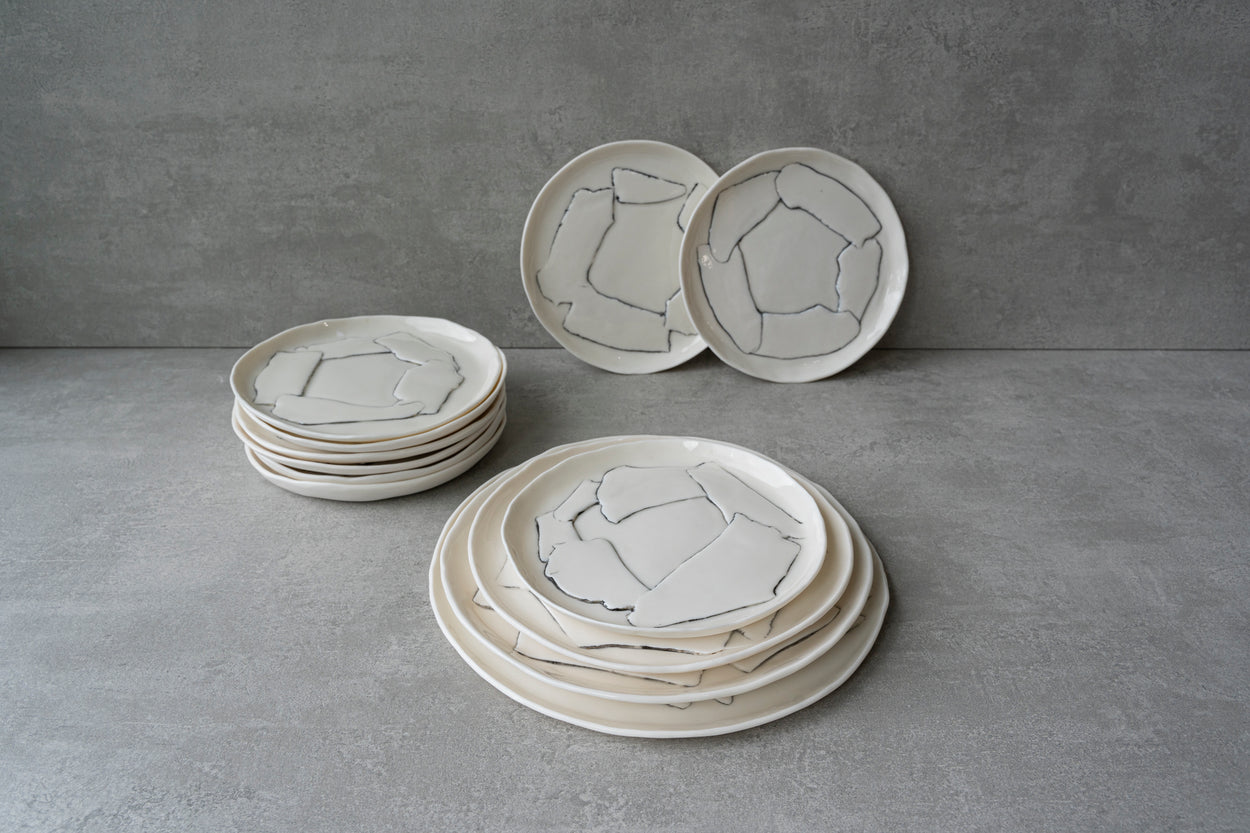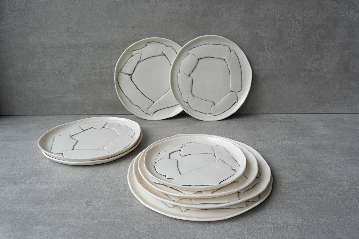 Assiette en porcelaine fine, blanche et translucide à la lumière. Emaillée à l'intérieur, polie à l'extérieur.