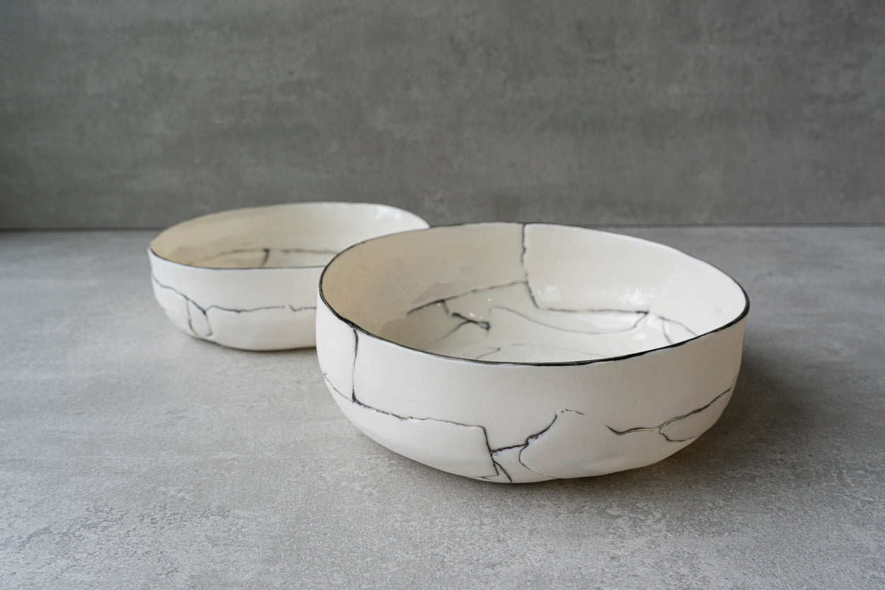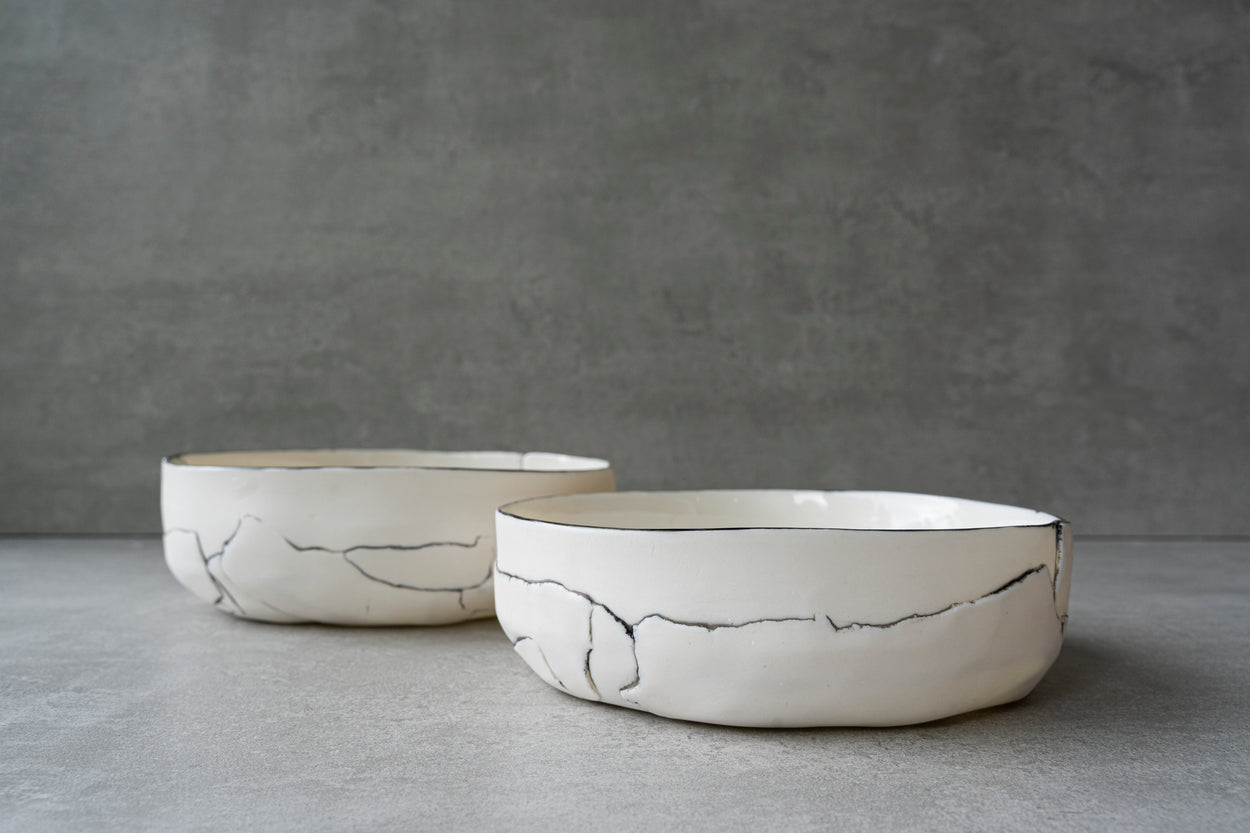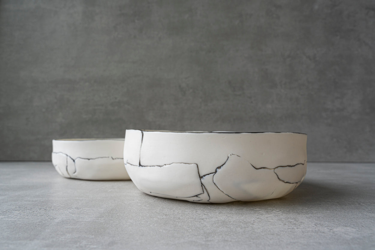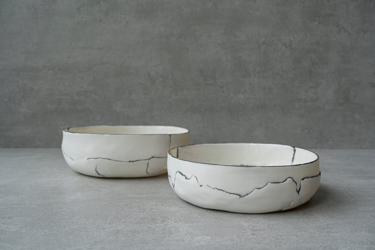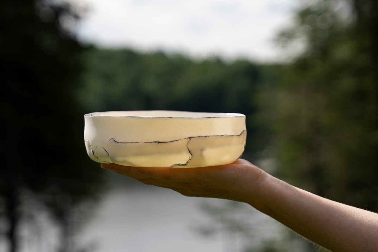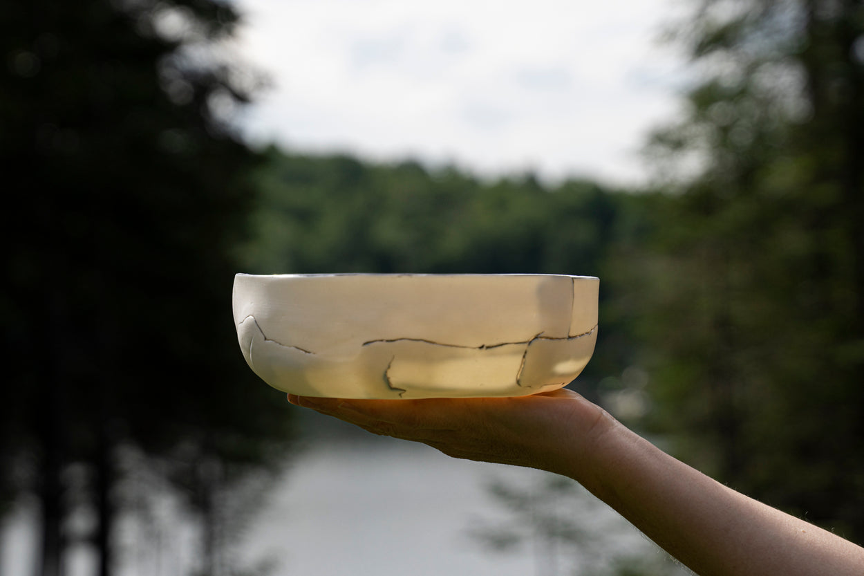 Bol en porcelaine fine blanche et translucide à la lumière. Émaillé à l'intérieur, poli à l'extérieur.