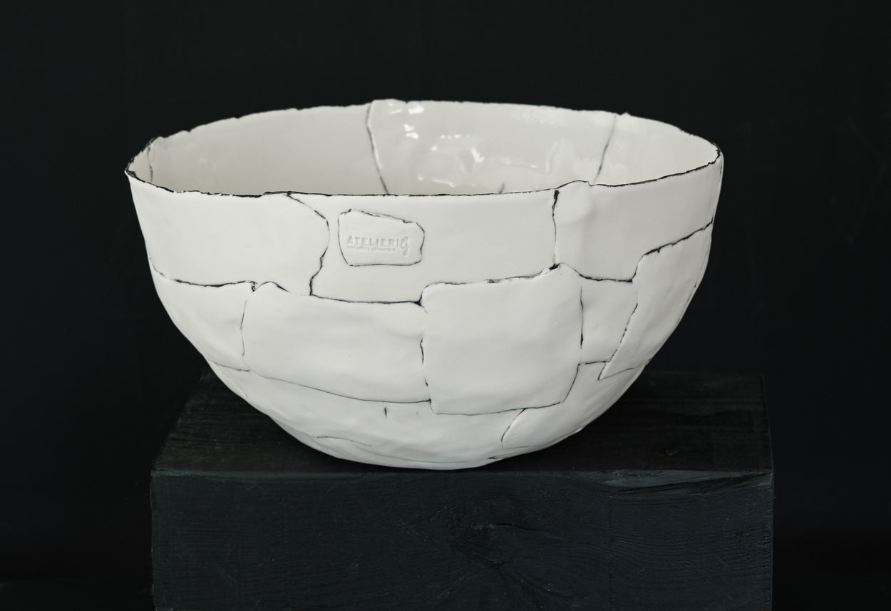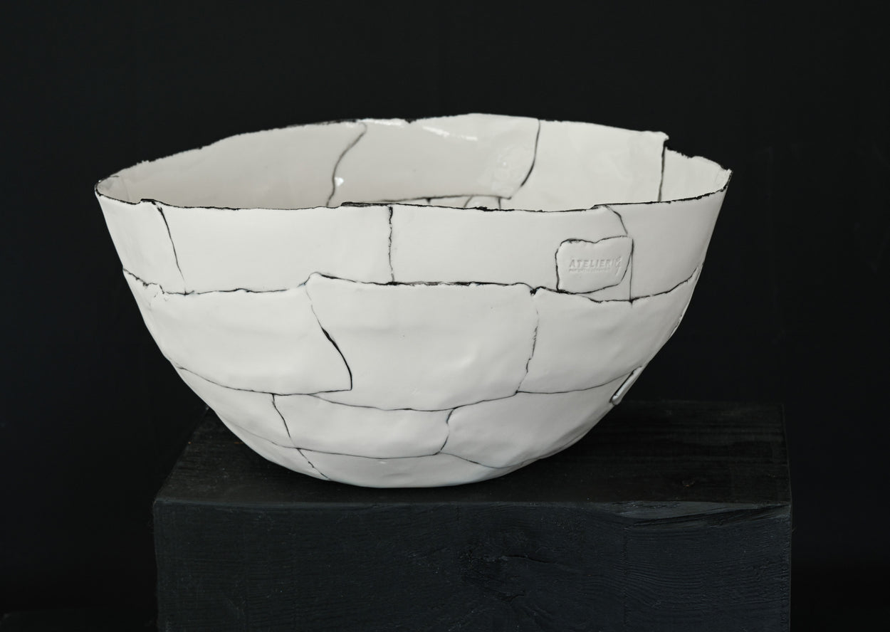 Dans la collection De Blanc et Noir, le bol Mouvement en cercle se distingue par un ensemble de gros bols qui transcendent la fonction utilitaire pour devenir des sculptures de table, invitant à la contemplation et à l'émerveillement.