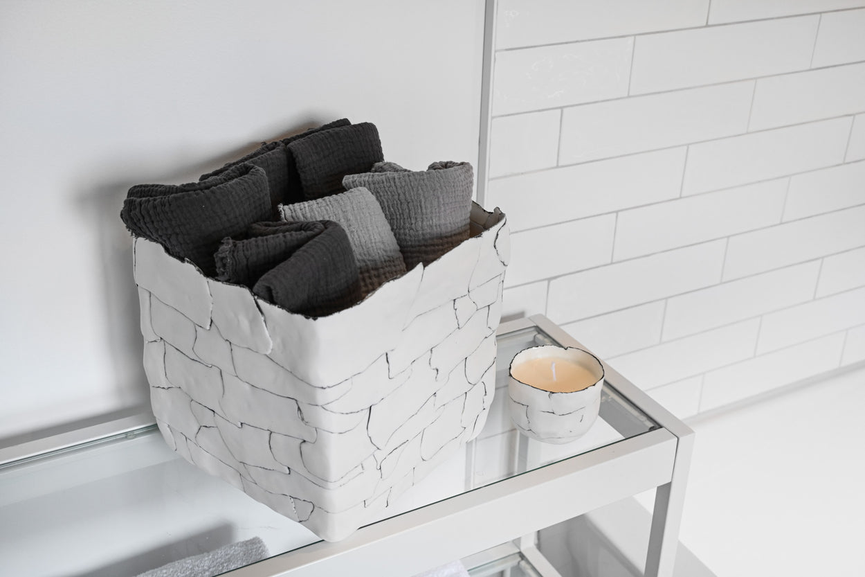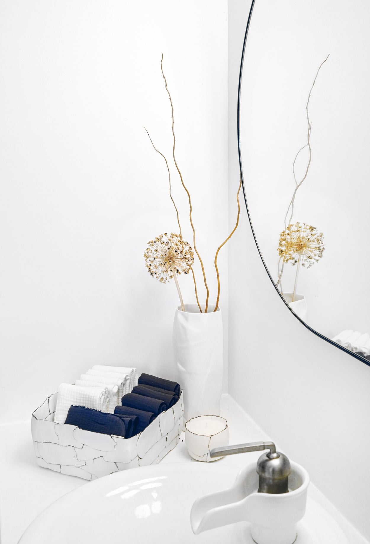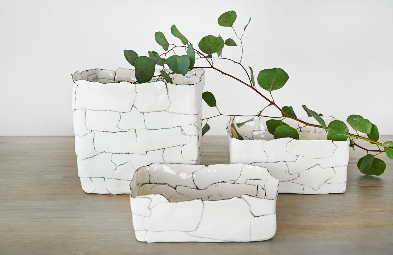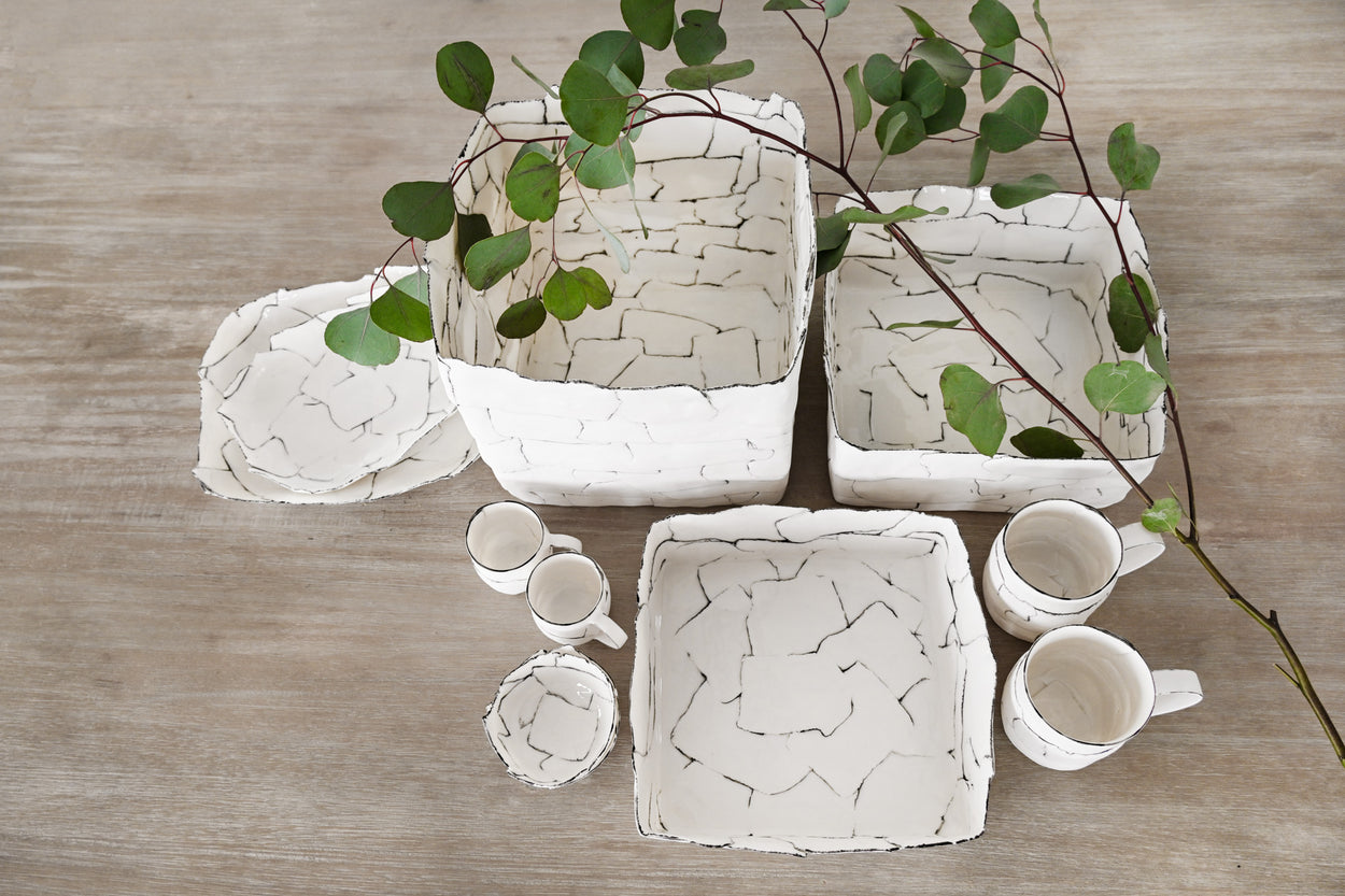 Dans cette série, trois carrés en porcelaine incarnent l'essence de la collection De Blanc et Noir.