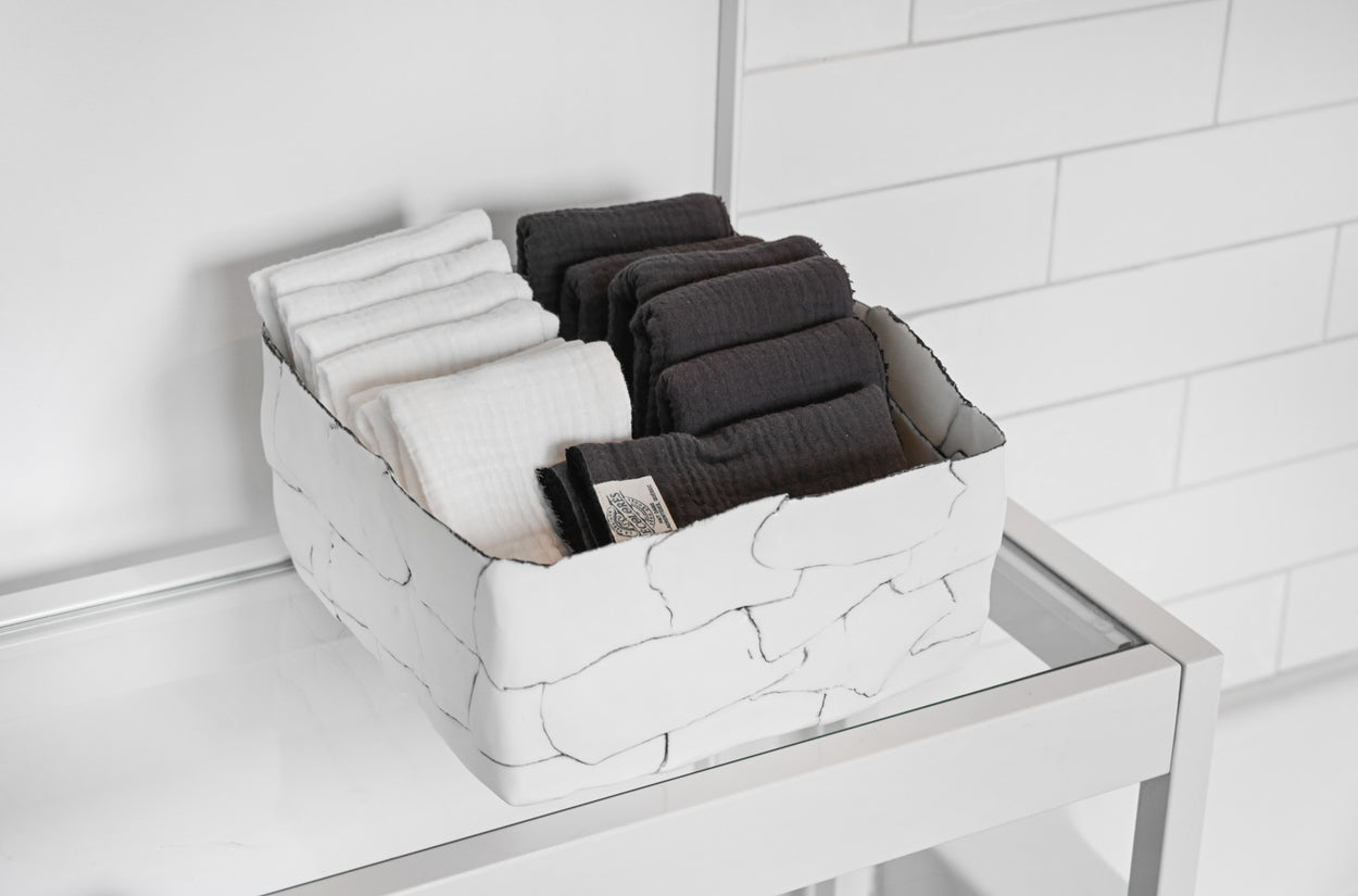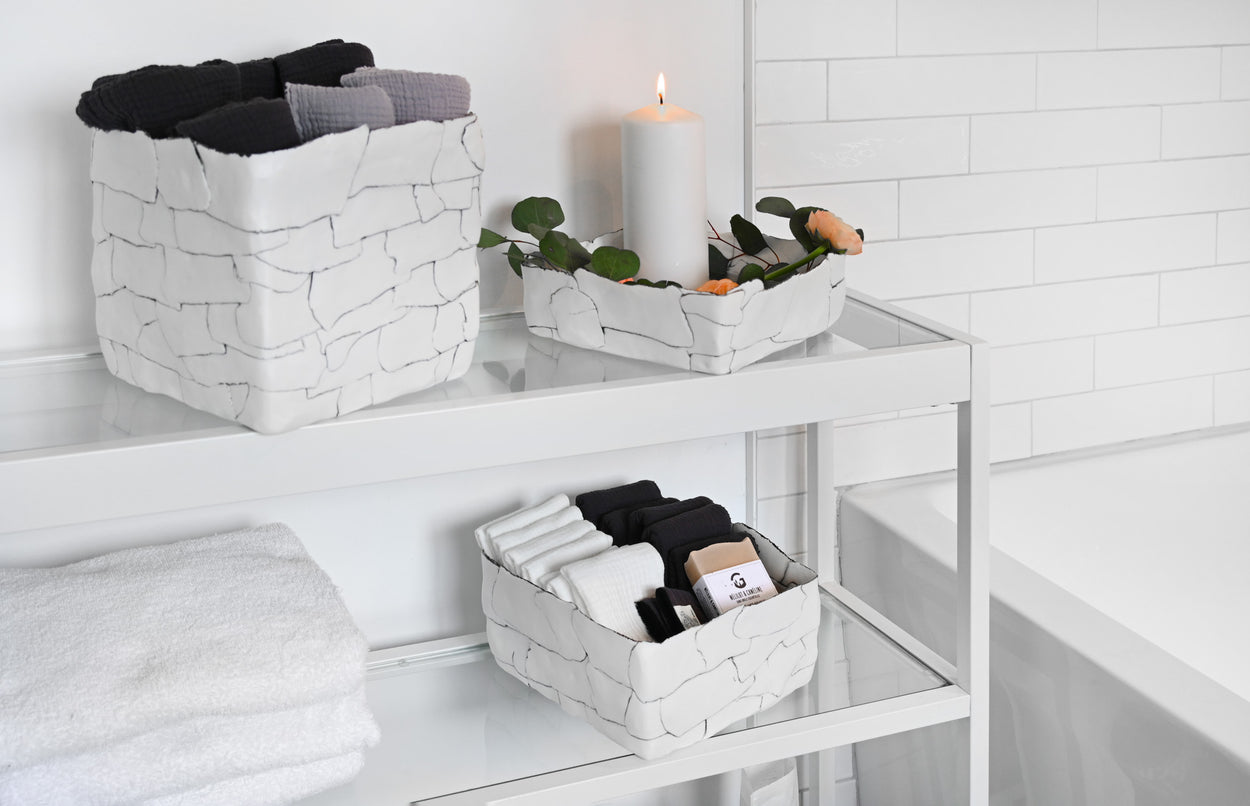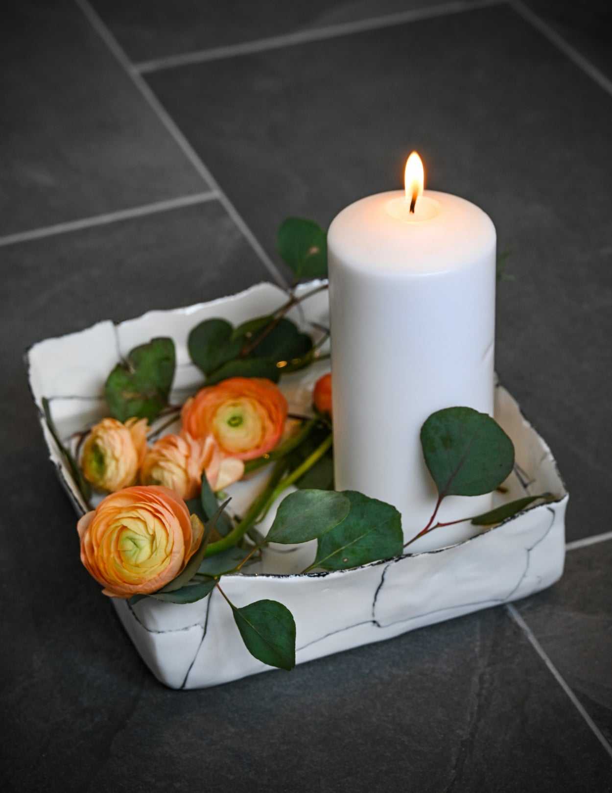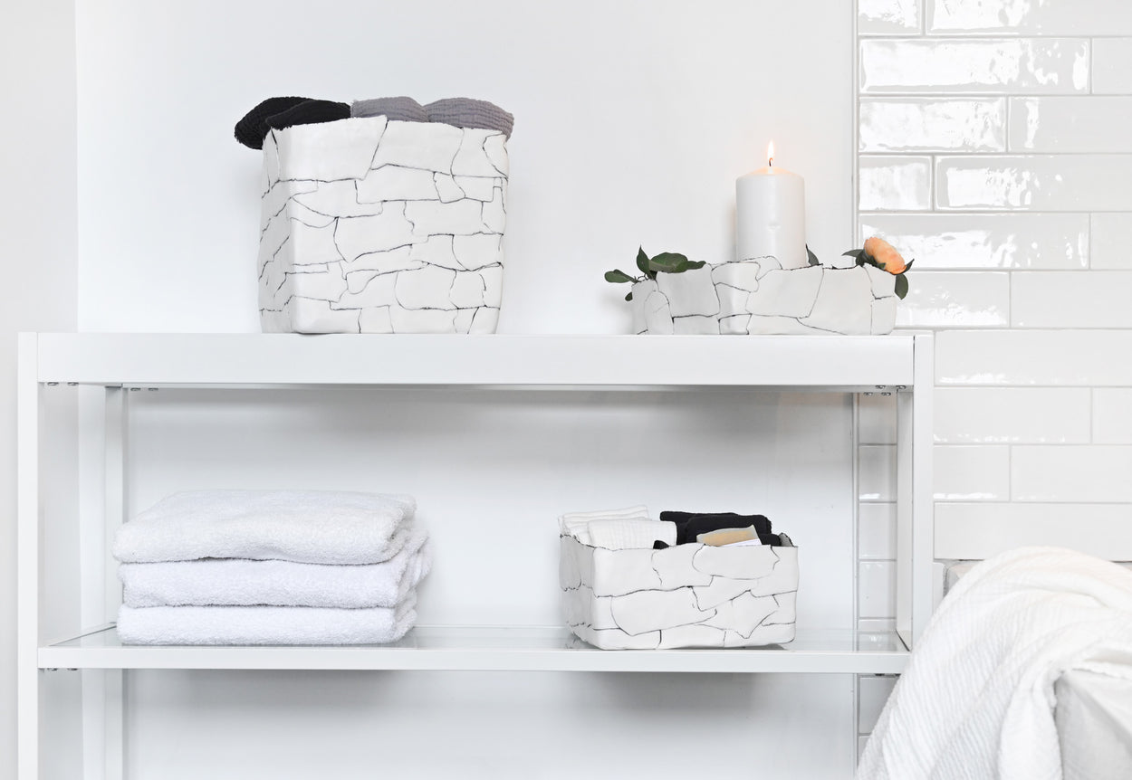 Dans cette série, trois carrés en porcelaine incarnent l'essence de la collection De Blanc et Noir.