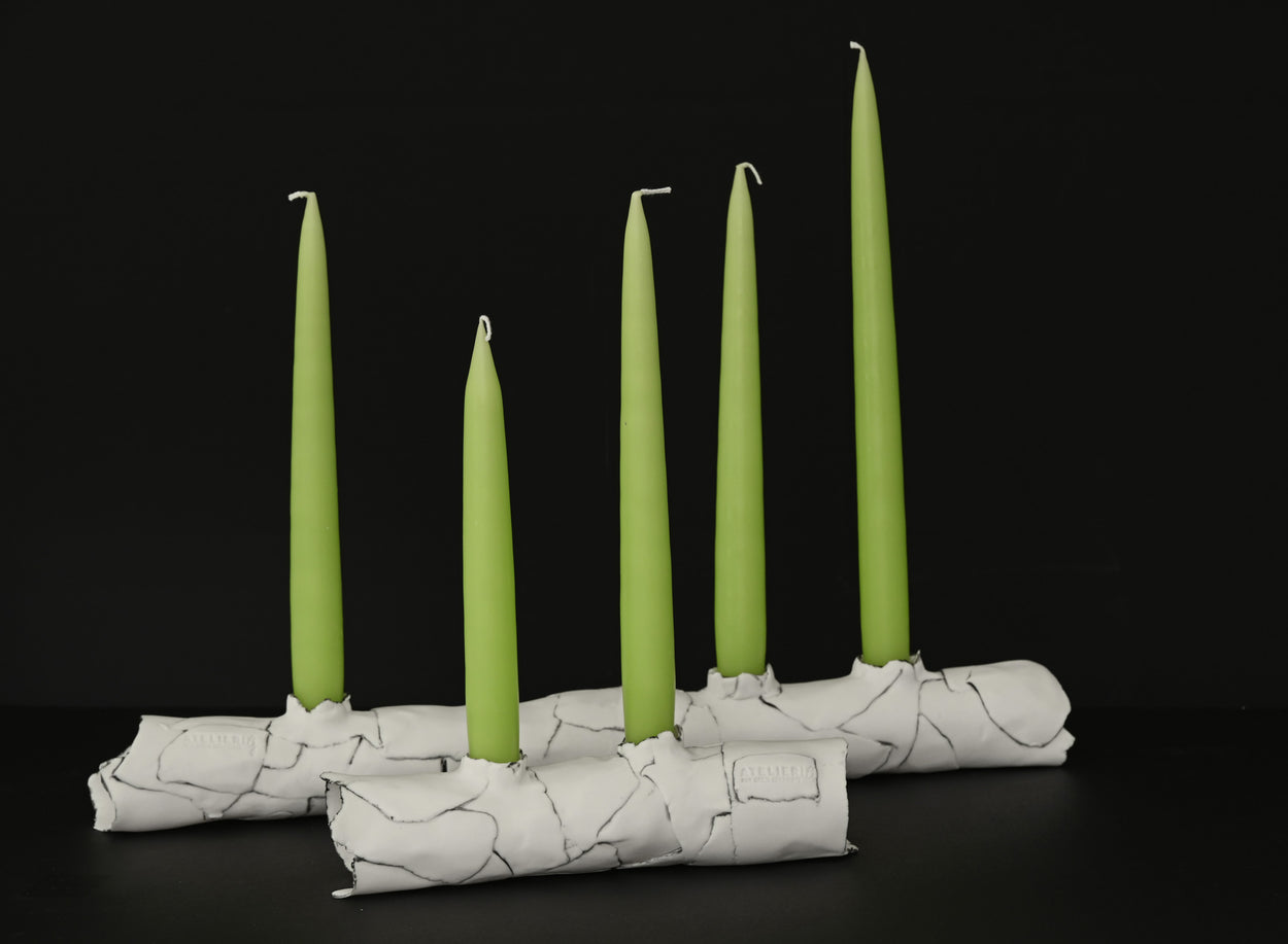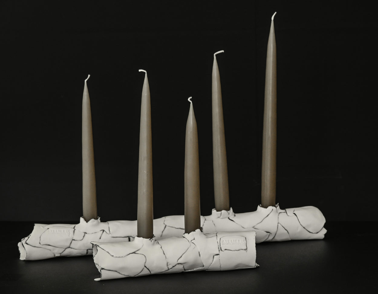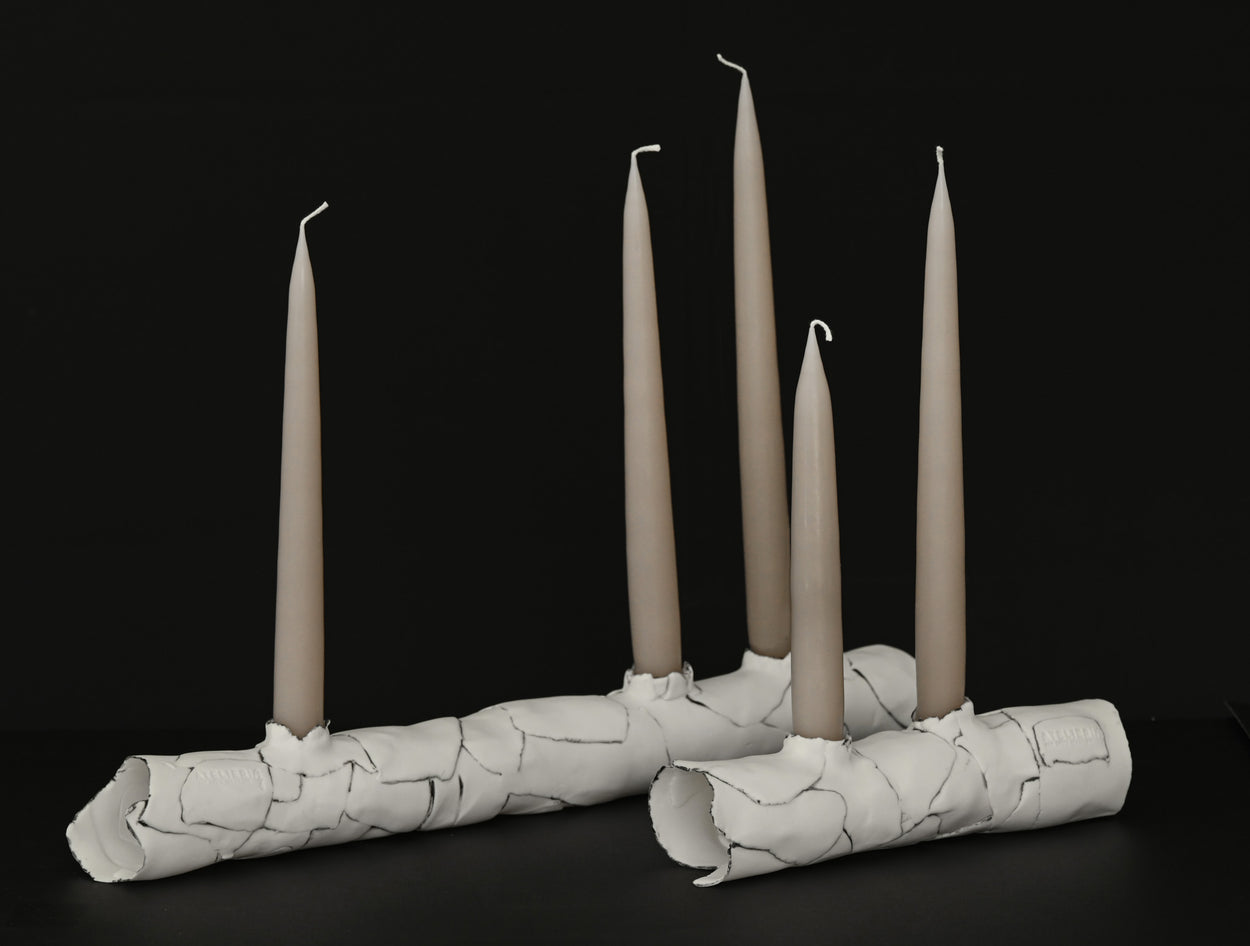 Seuls ou réunis, ces chandeliers captent la lumière avec subtilité et révèlent la poésie et la matière.