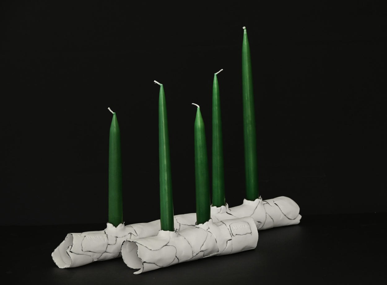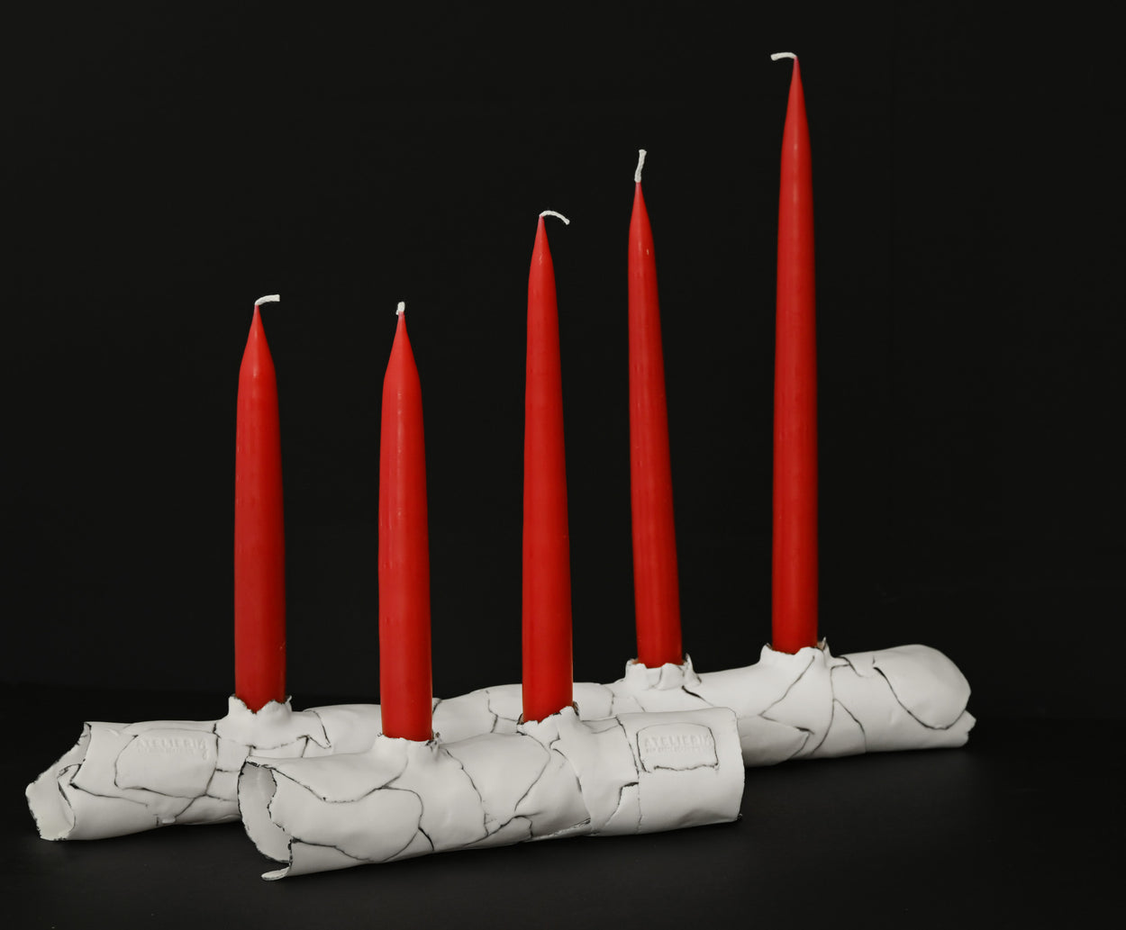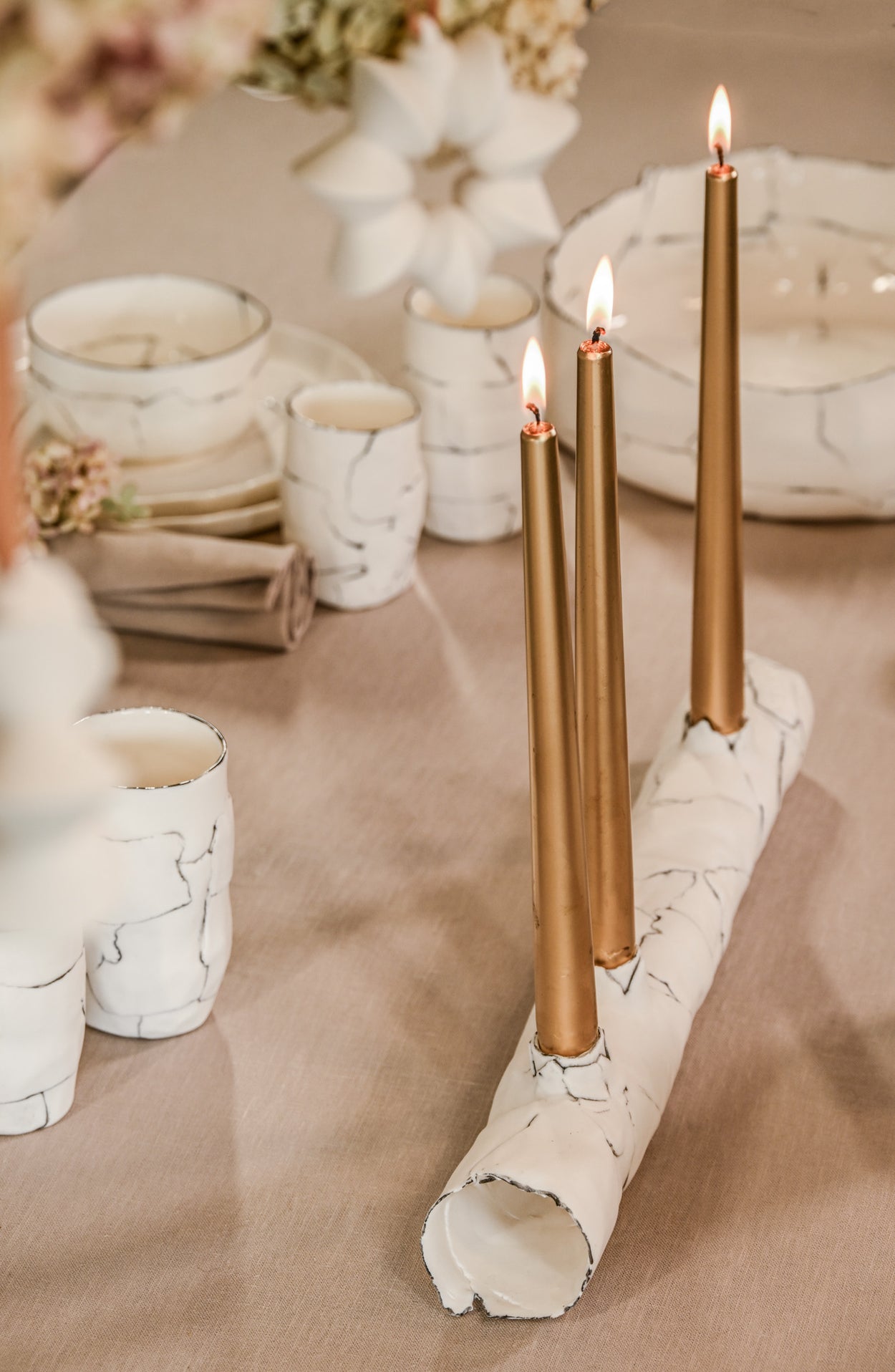 Seuls ou réunis, ces chandeliers captent la lumière avec subtilité et révèlent la poésie et la matière.
