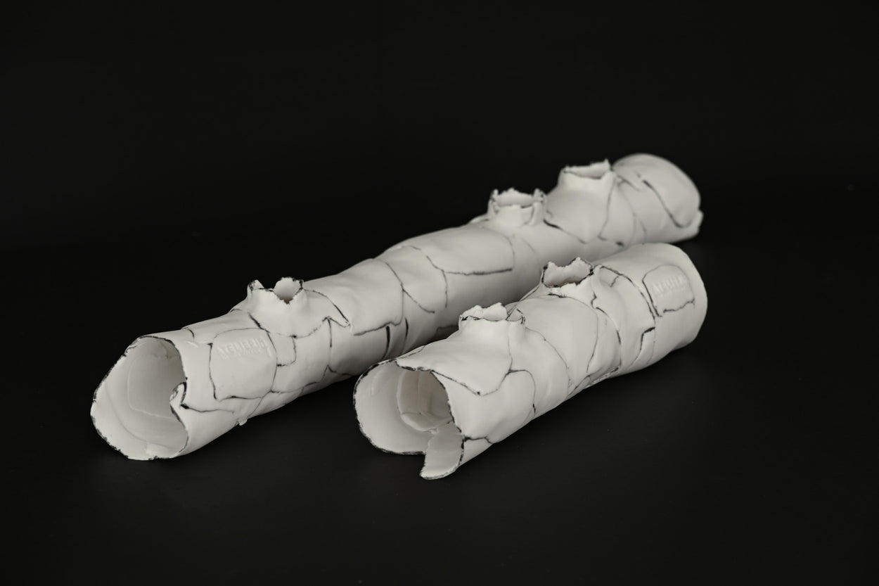 Leur silhouette épurée évoque la nature, la simplicité et l'élégance, invitant le spectateur à un instant de contemplation où la lumière dialogue avec la délicatesse de la porcelaine.