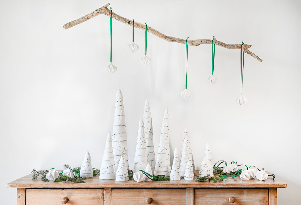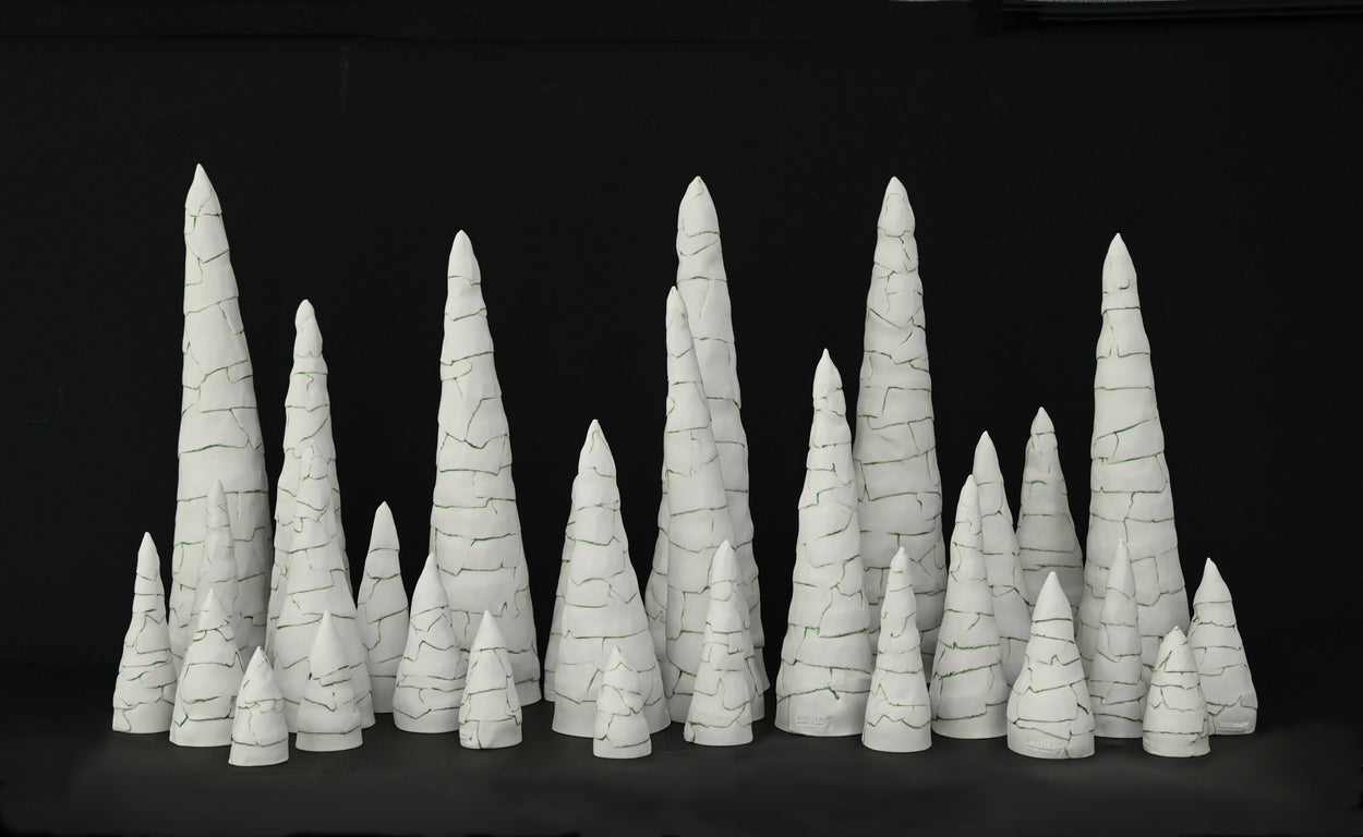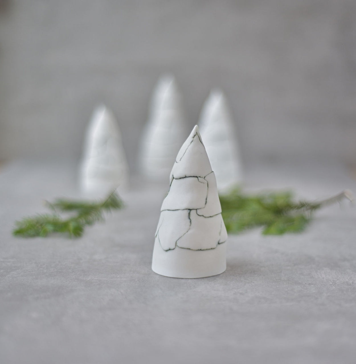 Façonnés à la main en porcelaine blanche, ces sapins évoquent la sérénité des forêts des Laurentides.