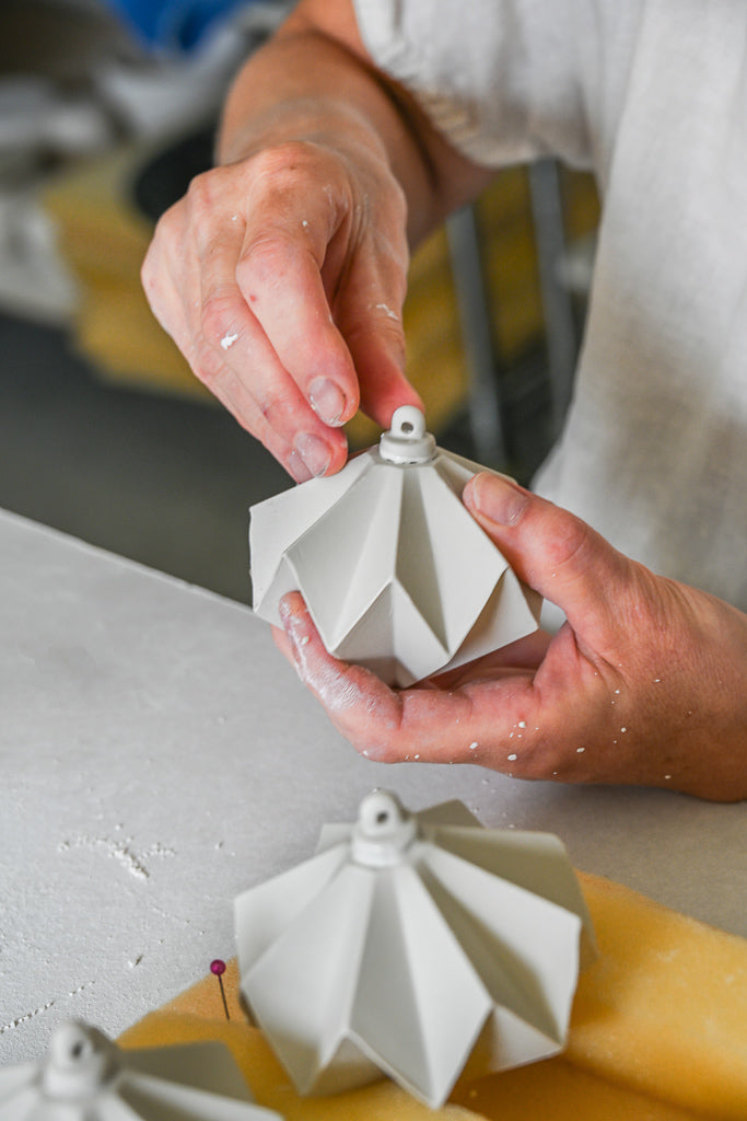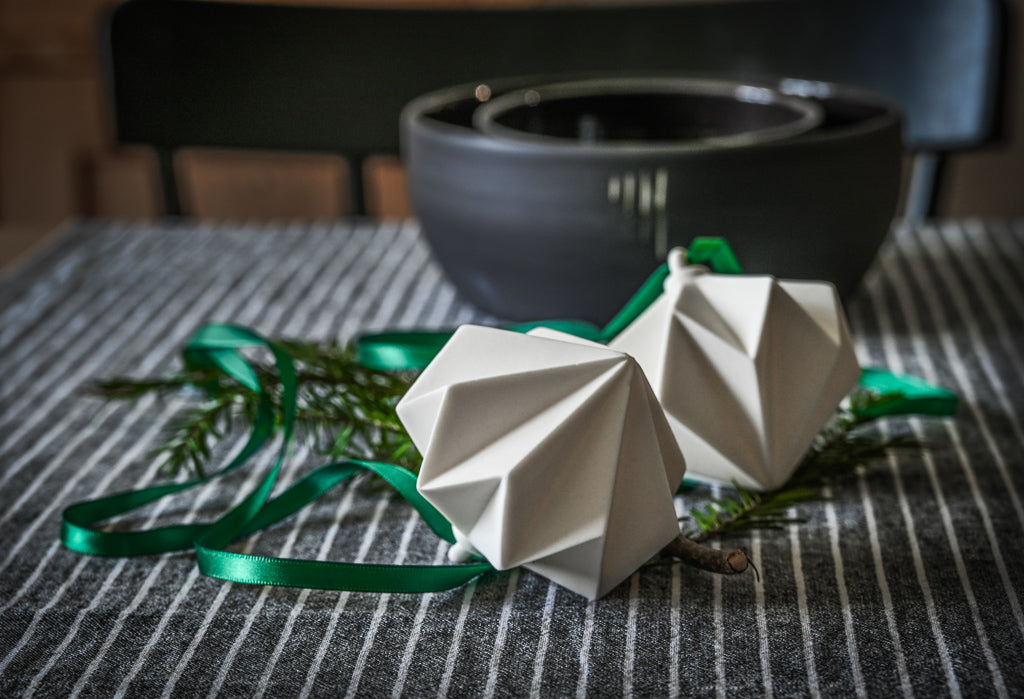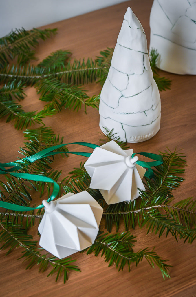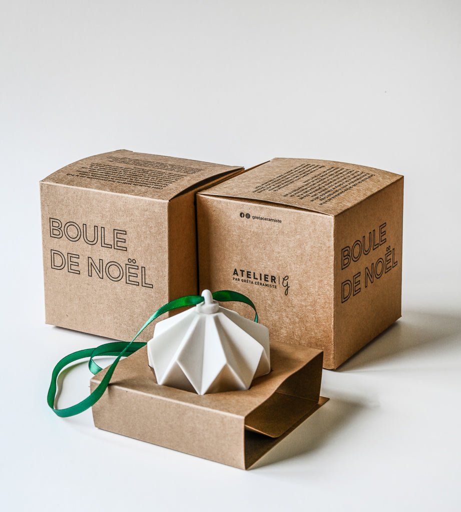 Cette boule de Noël en porcelaine fine est le fruit d'une collaboration entre la céramiste Gréta Jonckheere et de la designer Alexandra Gélinas qui ont uni leurs forces pour célébrer cette matière à la fois exigeante et généreuse. Elle est la consécration d'un rêve de longue date et incarne le constant désir d'explorer cette matière sous de nouveaux angles. Elle est aussi le symbole d'une amitié de l'une pour l'autre.